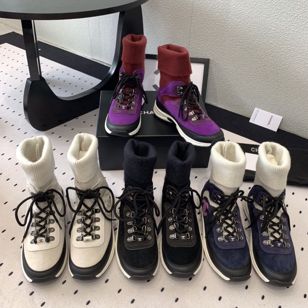 CHANEL 샤넬 CC로고 니트 스웨이드 여성용 스니커즈